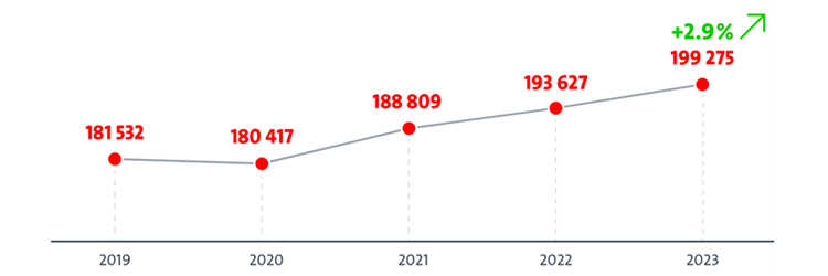 وفقًا لـ "مؤشر براءات الاختراع الأوروبي 2023" الصادر عن المكتب الأوروبي للبراءات، تلقى المكتب الأوروبي للبراءات ما مجموعه 19275 طلب براءة اختراع في عام 2023، بزيادة قدرها 2.9% عن عام 2022، مواصلًا معدل النمو البالغ 2.6% في عام 2022 و4.7% في عام 2021.