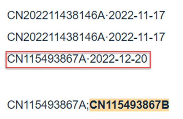 As can be seen from the example below, for a Chinese application, the interval from the filing of a new application on November 17, 2022 to the authorization on January 31, 2023 is less than 3 months.