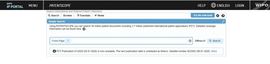 Patentscope de l'OMPI est très puissant, offrant un accès à plus de 83 millions de documents de brevets provenant de plusieurs offices de brevets participants, consultables dans neuf langues différentes. L'interface ci-dessus montre la recherche simple par défaut, qui est l'une des quatre méthodes de recherche de Patentscope. Vous pouvez également choisir d'effectuer une recherche rapide ou une recherche avancée.