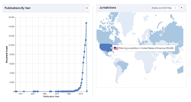 Les utilisateurs peuvent également rechercher des brevets américains expirés, abandonnés ou périmés en utilisant les services d'information sur le statut des brevets et les familles de brevets d'INPADOC. Les familles de brevets peuvent être visualisées à l'aide d'un arbre graphique au format pdf. De plus, les graphiques dynamiques sont une autre fonctionnalité de lens.org qui est utile lors de l'analyse des informations sur les brevets.