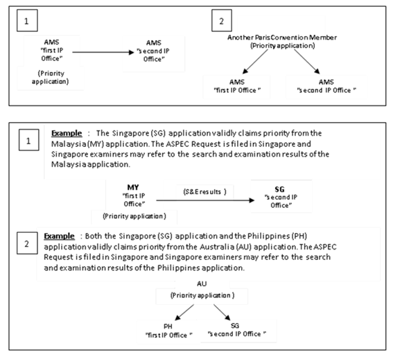 L'ASEAN Patent Examination Coopération (ASPEC) est un programme par lequel un office de propriété intellectuelle d'un État membre de l'ASEAN (« AMS ») utilise les résultats de recherche et d'examen (« S&E ») d'un office de propriété intellectuelle d'un autre État membre de l'ASEAN comme référence pour ses propres Travaux de S&E. Au total, neuf offices de propriété intellectuelle du Brunei, du Cambodge, de l'Indonésie, du Laos, de la Malaisie, des Philippines, de Singapour, de la Thaïlande et du Vietnam ont participé. Les demandeurs de brevet doivent soumettre un « Formulaire de demande de coopération technologique en matière de brevets pour l'Asie-Pacifique » (demande ASPEC) au deuxième Office de la propriété intellectuelle et joindre les documents suivants :