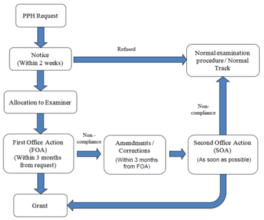 - Le délai de traitement de MyIPO pour PPH est de 3 mois à compter de la date de réception de la demande PPH ou PCT-PPH, à condition que la demande réponde aux exigences légales. Si MyIPO émet un avis d'examen, le demandeur peut répondre et modifier la demande dans les 3 mois suivant la délivrance du rapport d'examen. MyIPO examinera la réponse du demandeur dans les 3 mois dès que possible.