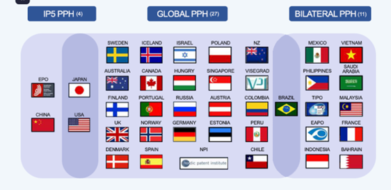 - 現在、KIPOはDPMA、IMPI、IPOPHL、TIPO、SIC、EAPO、IPベトナム、SAIP、INPI(ブラジル)、MyIPO、INPI(フランス)、DGIP、MOIC、JPO、USPTO、DKPTO、UKIPO、CIPO、 ROSPATENT、NBPR、SPTO、CNIPA、HIPO、IPOS、APO、PPO が PPH 二国間協定に署名しました。