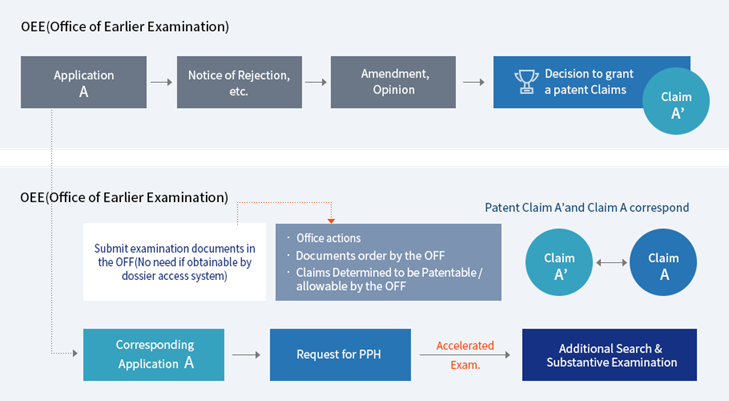 - PPH 要求 (発明特許出願にのみ適用):韓国は、特許審査ハイウェイ (PPH)、グローバル PPH (グローバル PPH) パイロット、および他国との二国間 PPH 協定に参加しています。 IP5 PPH 計画とグローバル PPH 計画は、内容は同じですが、参加事業所が異なります。
